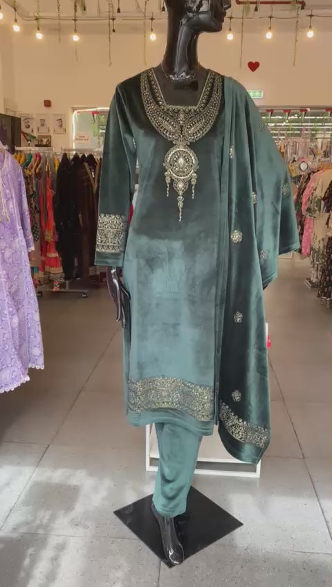 DUPATTA SET - Lux velvet green color family 102423